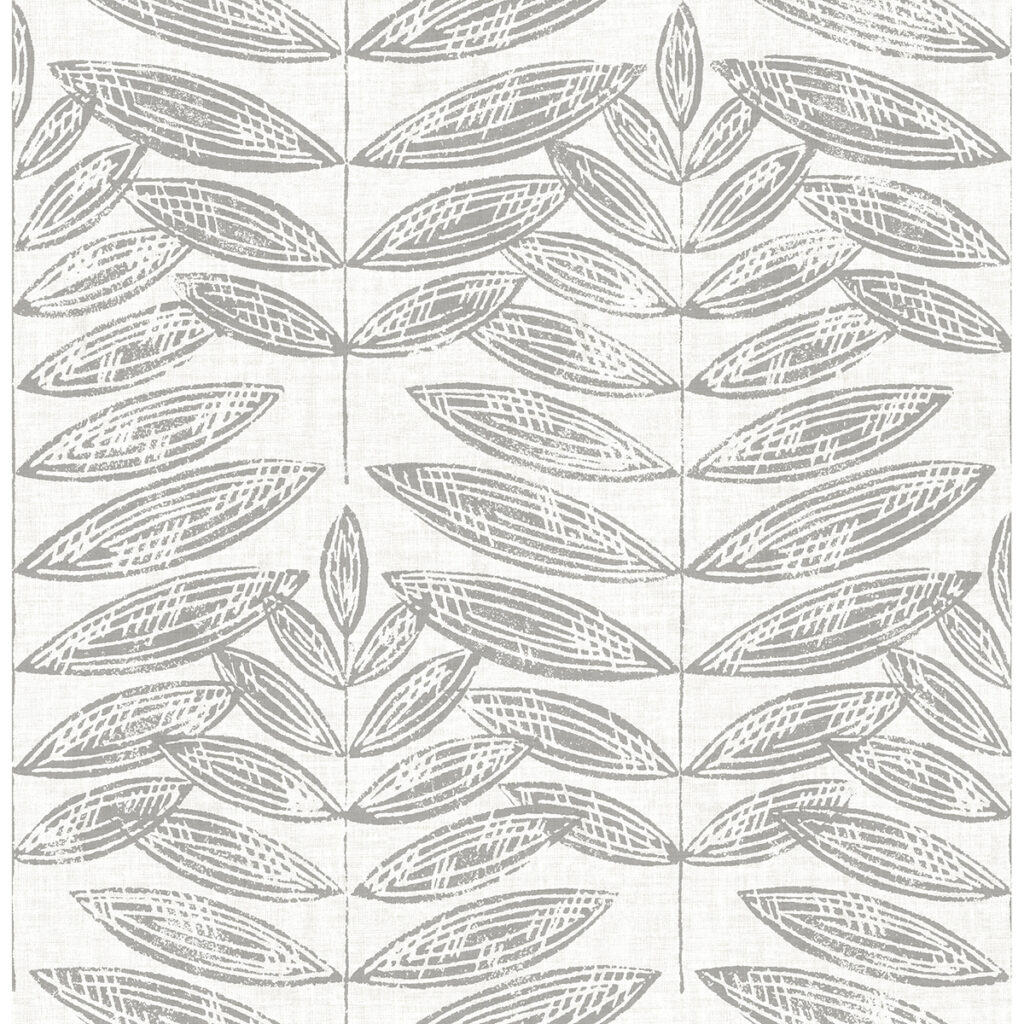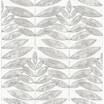 Add simple earthen splendor to your home with this botanical block print design. The large, segmented grey leaves are printed against a delicately woven faux linen backdrop. Akira is an unpasted, non woven wallpaper.