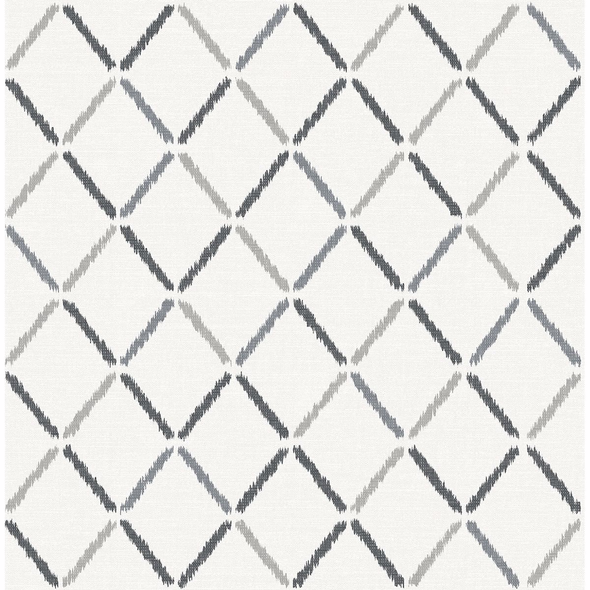 A linen inspired wallpaper with a contemporary edge, a grey and charcoal geometric pattern pops against an off-white background. Raised inks and its ikat flair effortlessly complement its woven design. Allotrope is an unpasted, non woven wallpaper.