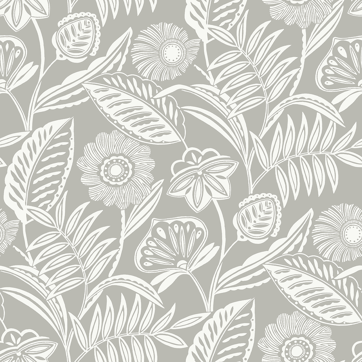 Alma Light Grey Tropical Floral Wallpaper