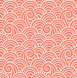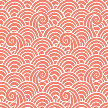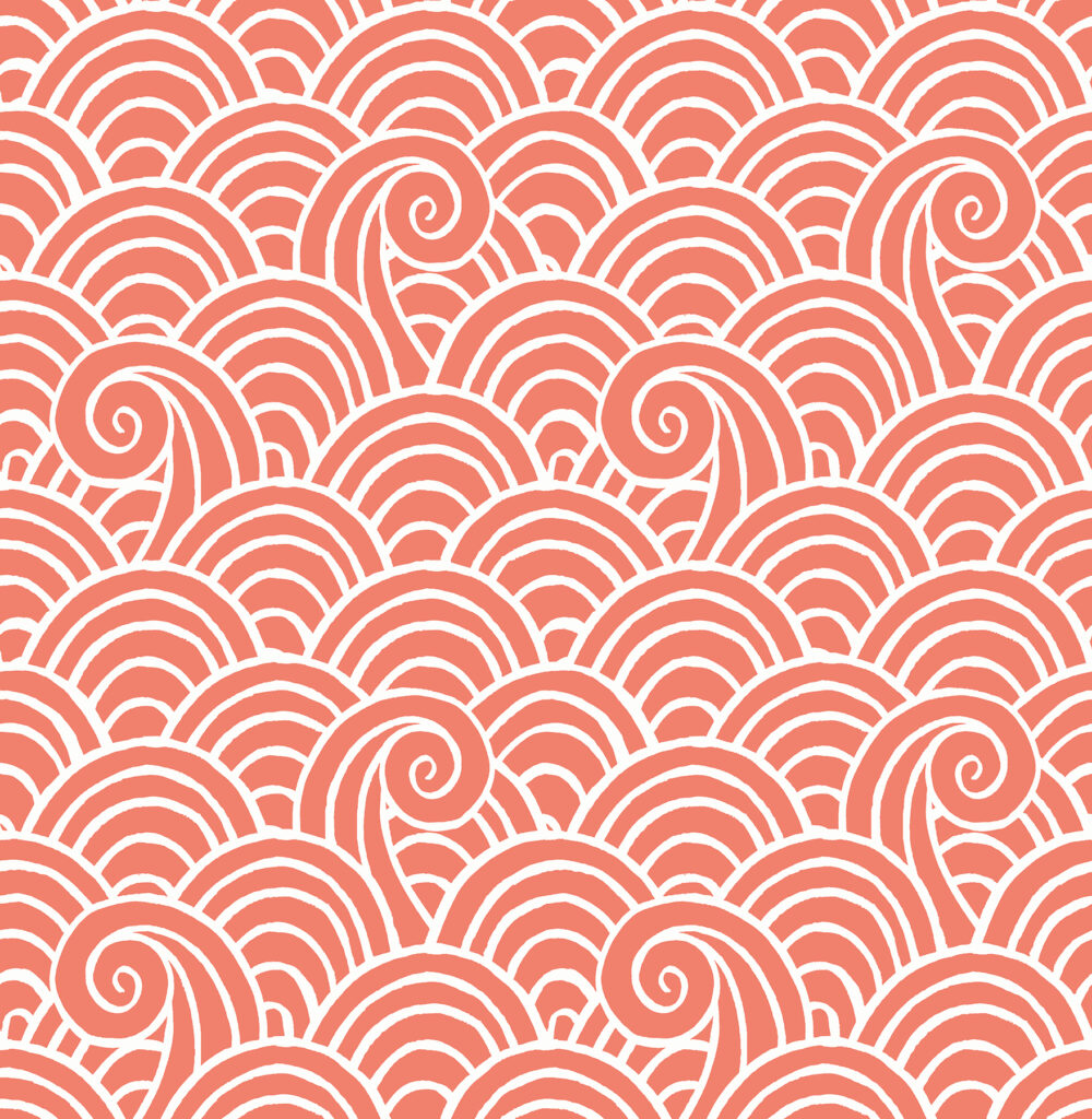 Wave goodbye to boring interiors with this playful wallpaper! These ocean swells are colored a charming coral pink, the waves shaped with thick white lines that add a sense of motion to this design. Alorah is an unpasted, non woven wallpaper.