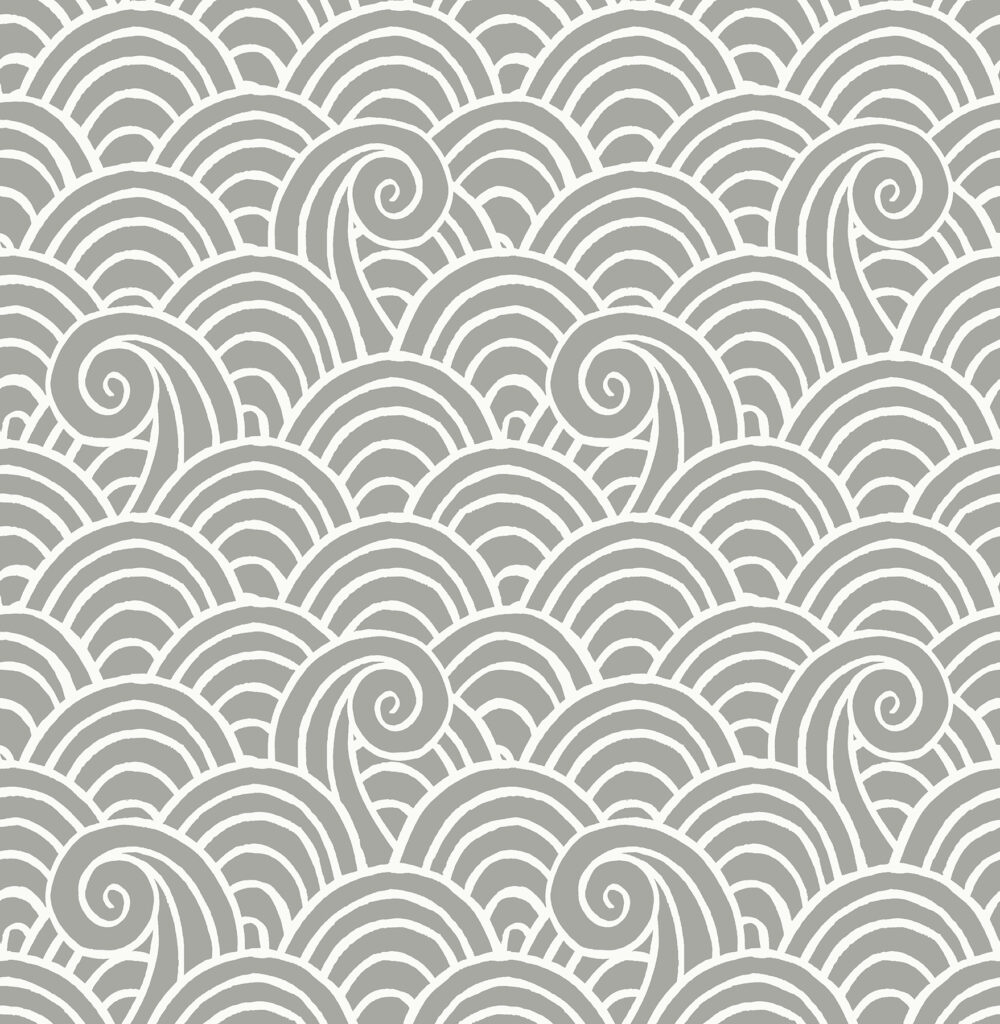 This wave wallpaper is a playful and modern update to a classic design theme! The grey ocean swells are shaped by thick white lines that exaggerate the motion of the ocean. Alorah is an unpasted, non woven wallpaper.