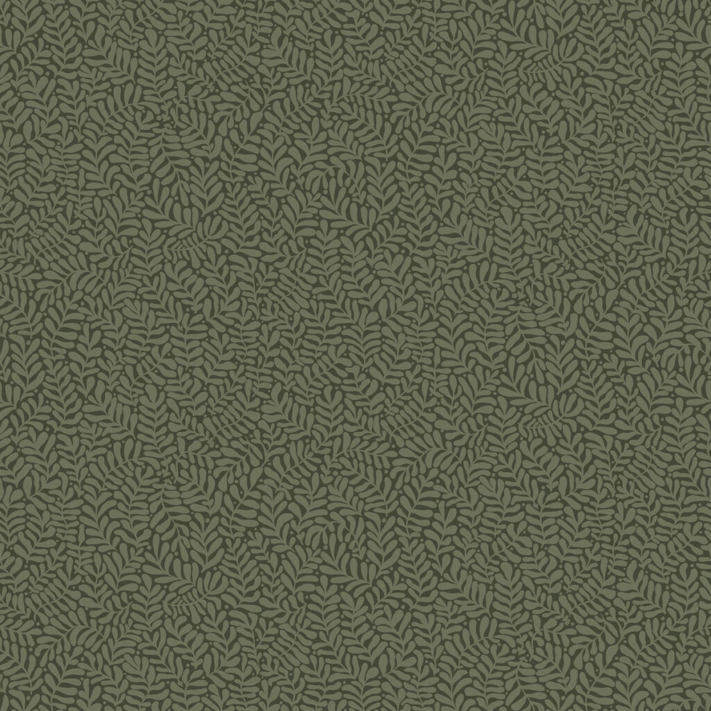 Add depth and simple woodland charm to your walls with this botanical design. The petite, illustrative ferns are inked in moss green against an even darker green, the curling fronds tightly packed together. Anna is an unpasted, non woven wallpaper.
