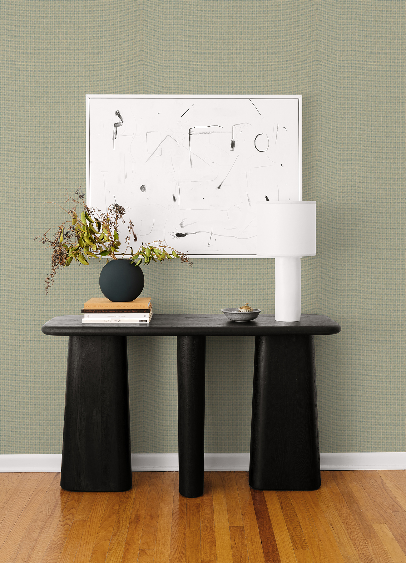 Design an airy and sophisticated space with this chic grasscloth. Two types of white fibers are loosely woven together along a pearlescent light blue backdrop. Annchi is an unpasted, paper weave grasscloth wallpaper.
