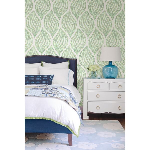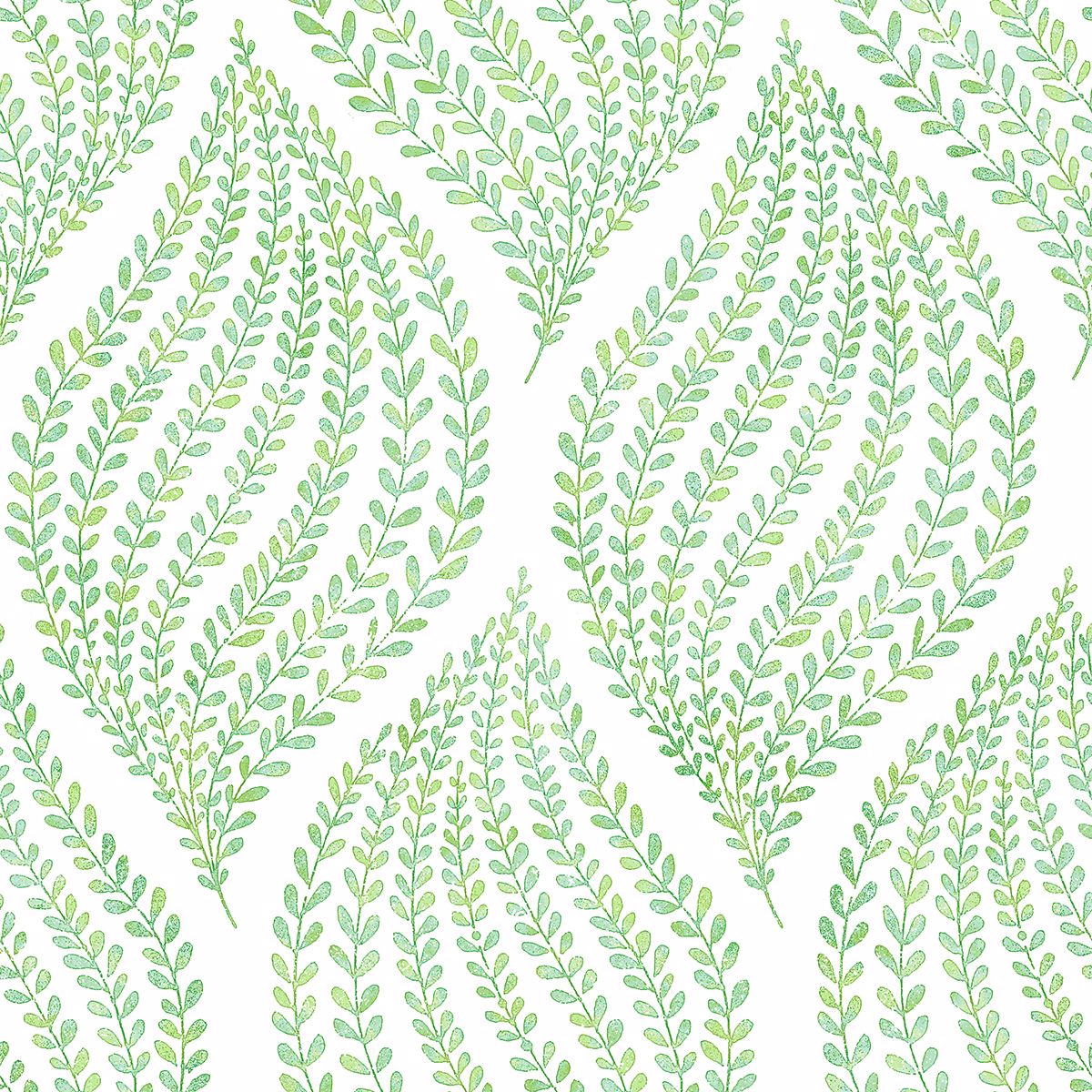 This flowing leaf print wallpaper is full of dimension. Vibrant shades of green are accented by a distressed overlay that gives the look of sparkles catching the light.