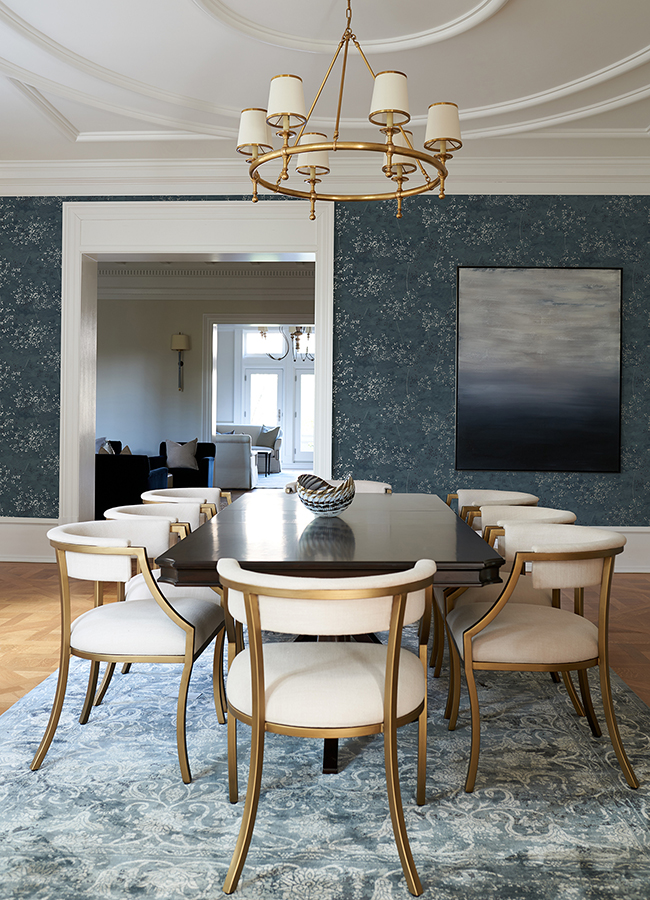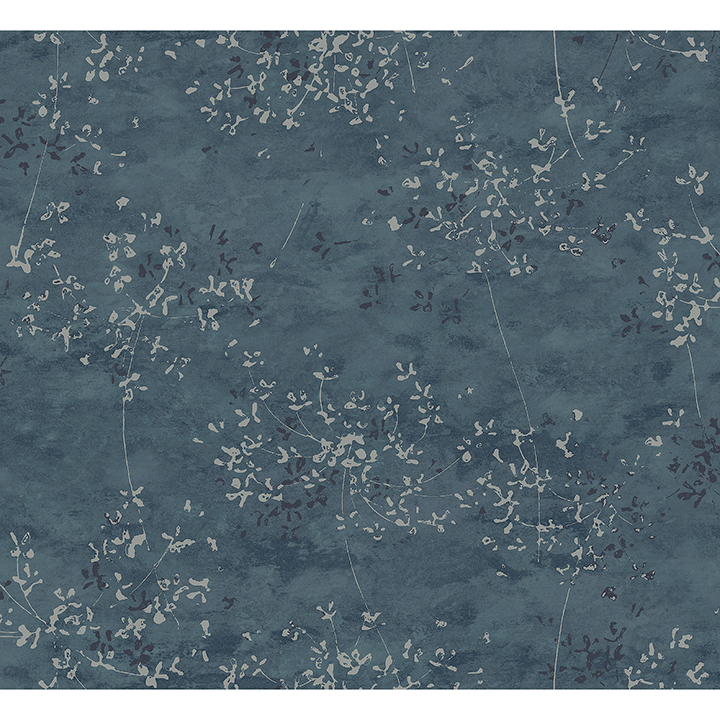 Enjoy rich blues elevated with metallic touches with this chic abstract wallpaper. The inkburst florals are finished in shining silver, adding brightness to the rich, marbled blue backdrop. Arian is an unpasted, non woven wallpaper.