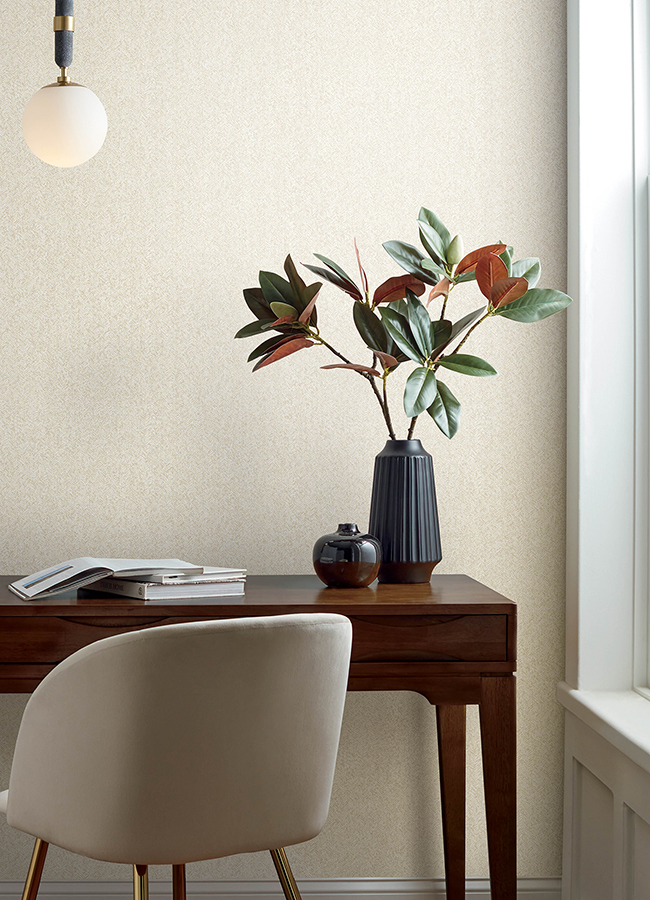 Neutral hues make for a perfect pairing with this sophisticated faux fabric wallpaper. The small-scale chevron print is reminiscent of tweed fabrics, especially with its warm blend of taupe and cream hues. Ashbee is an unpasted, non woven wallpaper measuring 20.5 inches wide by 33 feet long, covering approxiamately About 56.4 square feet square feet per roll