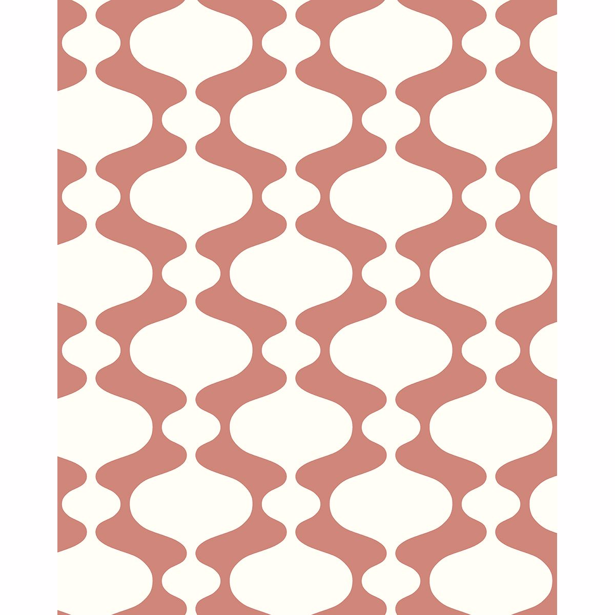 Cheerful coral will warm up a room. This undulating ogee designed is printed with raised ink for a block printed look. Emilio is an unpasted, non woven wallpaper.