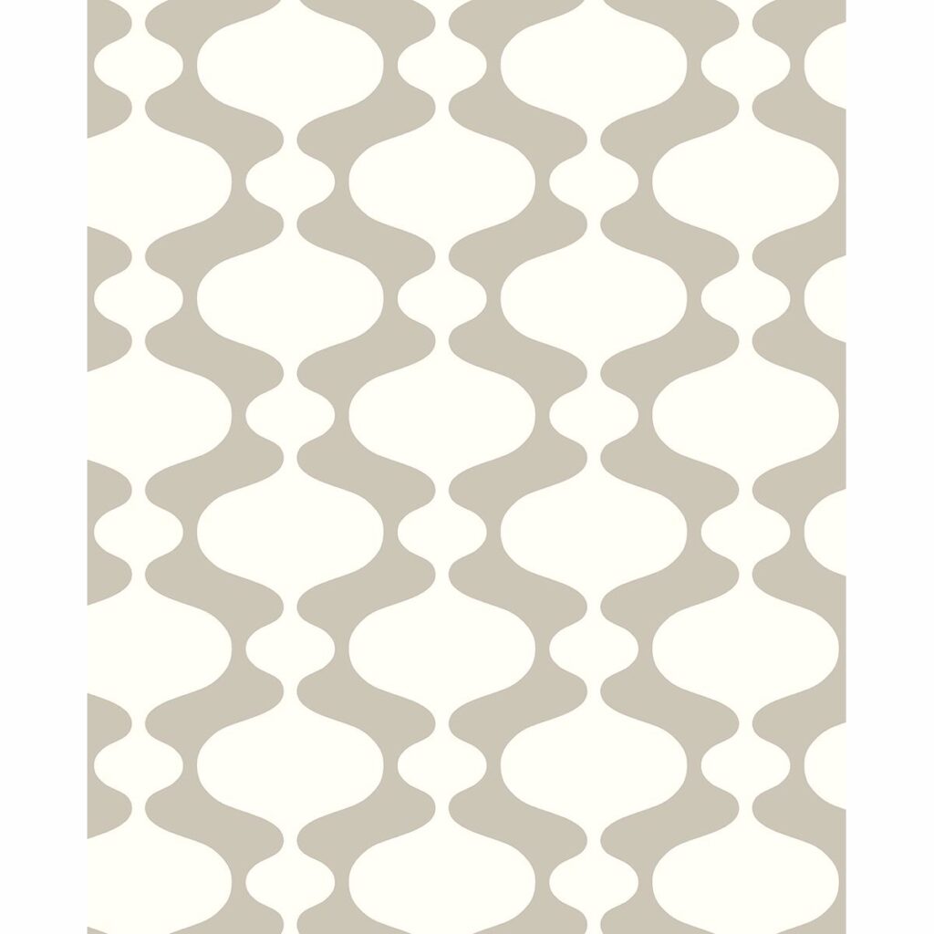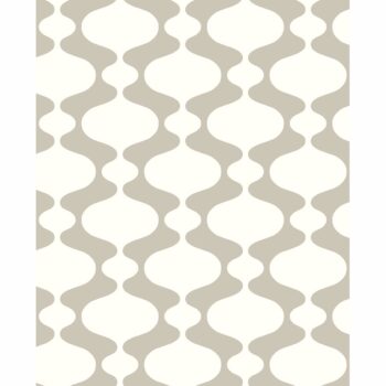 A retro-style ogee is printed in taupe and white for a modern look. The pattern features a raised ink texture. Emilio is an unpasted, non woven wallpaper.