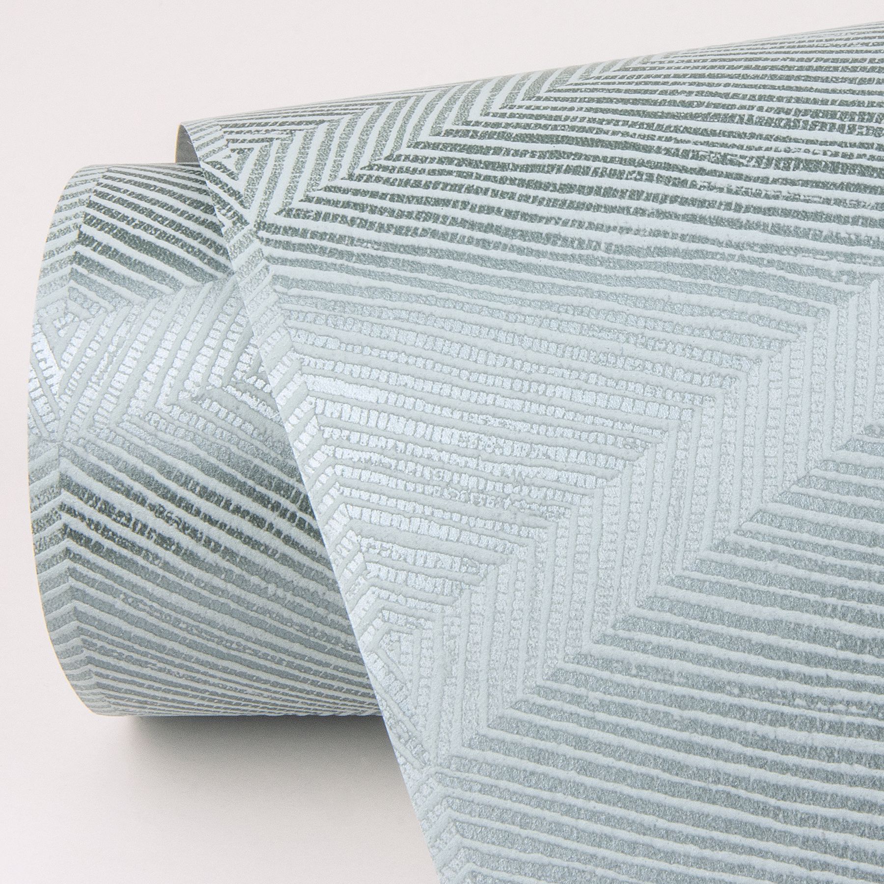 With an abstract flair, this chevron print has a contemporary edge. The two-toned aqua backdrop and shimmering textured details are truly stunning. Aspen is an unpasted, non-woven wallpaper.