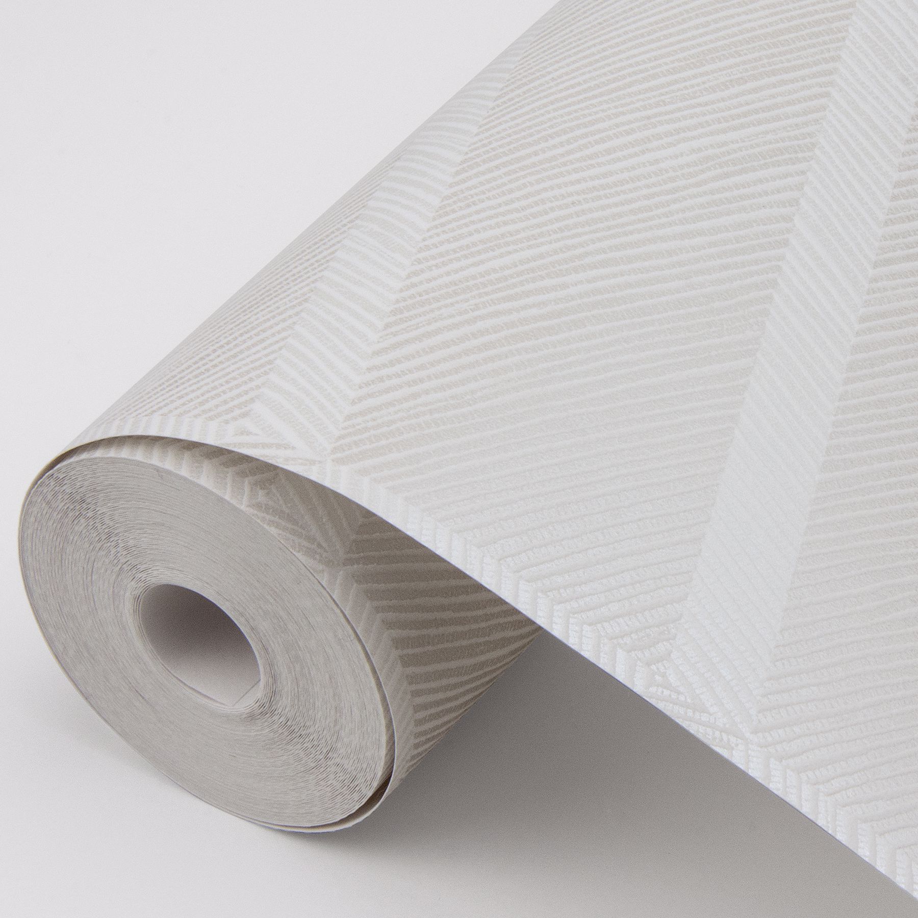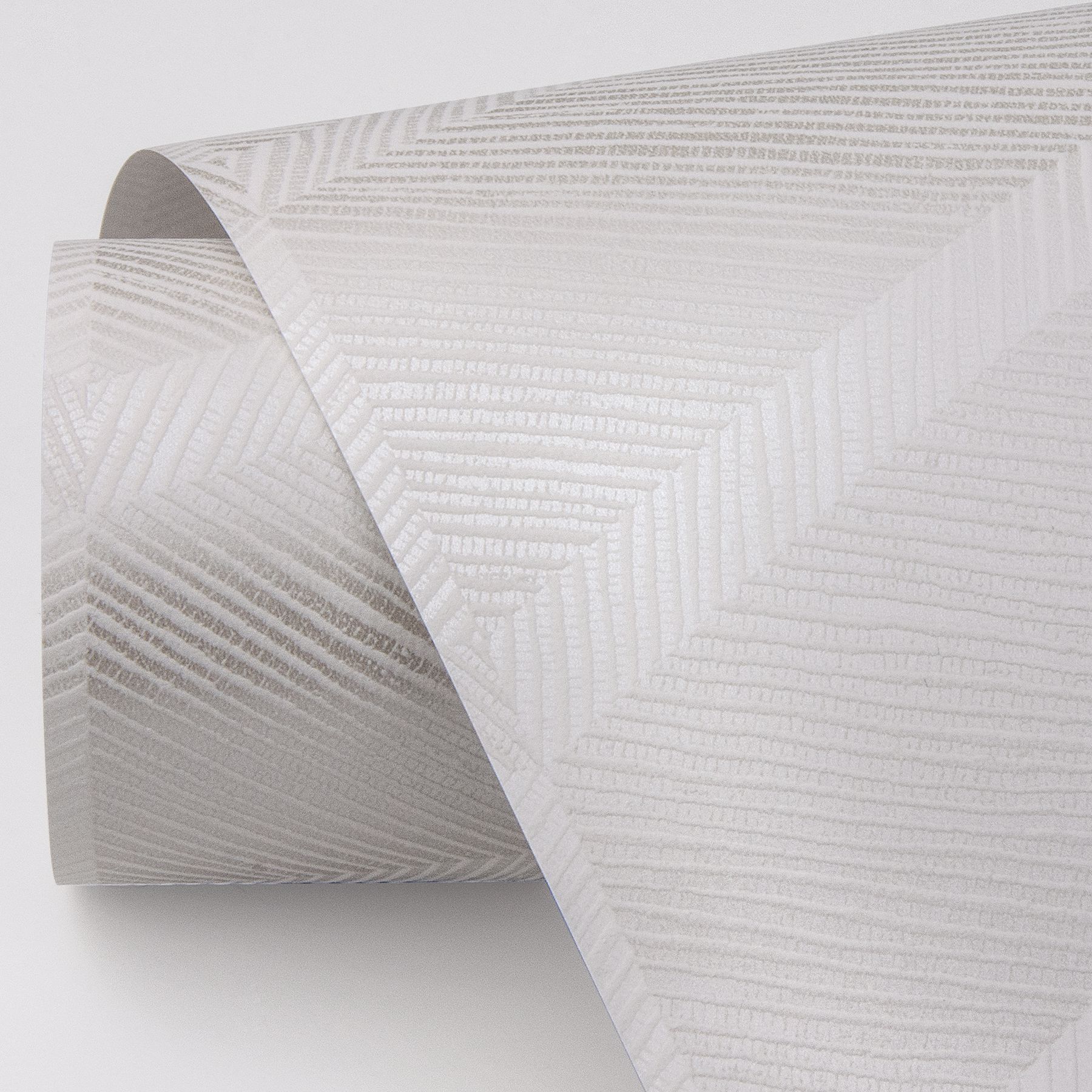 Intricate and dazzling, this wallpaper creates a uniquely dimensional effect. The chevron design emphasizes its two-toned metallic backdrop. Aspen is an unpasted, non-woven wallpaper.