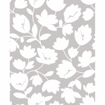 A charming floral wallpaper. White silhouettes dance and bloom over a crisp grey background. Matilda is an unpasted, non woven wallpaper.