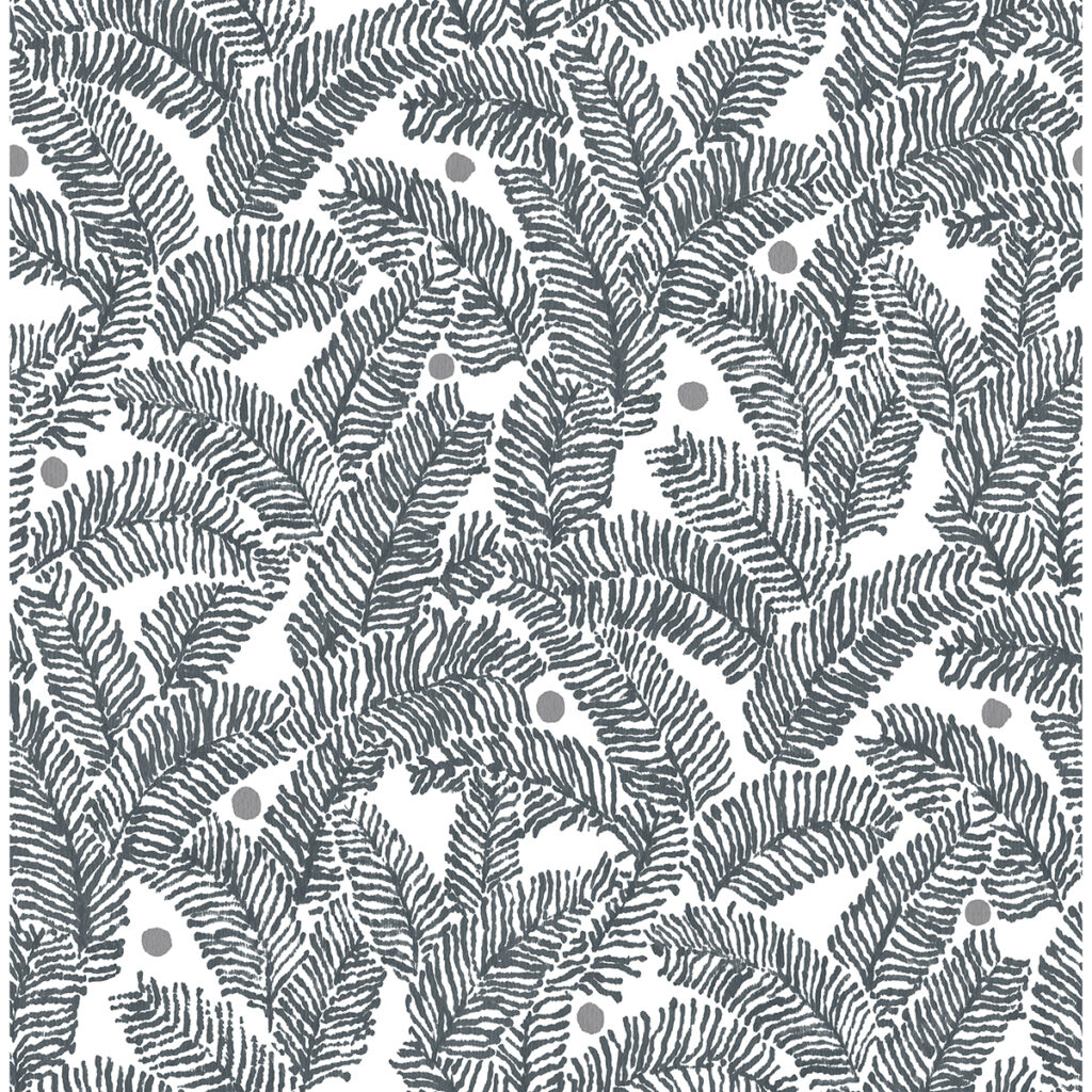 This Scandinavian-inspired botanical has a mystical feel. Groups of dark grey ferns arch across a white backdrop, accented by sporadic light grey dots. Athina is an unpasted, non woven wallpaper.