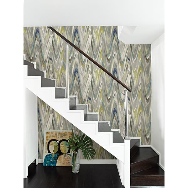 This 1960’s inspired wave print wallpaper is made over into a modern show stopper. The simple design is taken to the next level with an intersecting color palette of greys, blues, and greens. From moss to verdigris to cobalt, this design covers the spectrum.