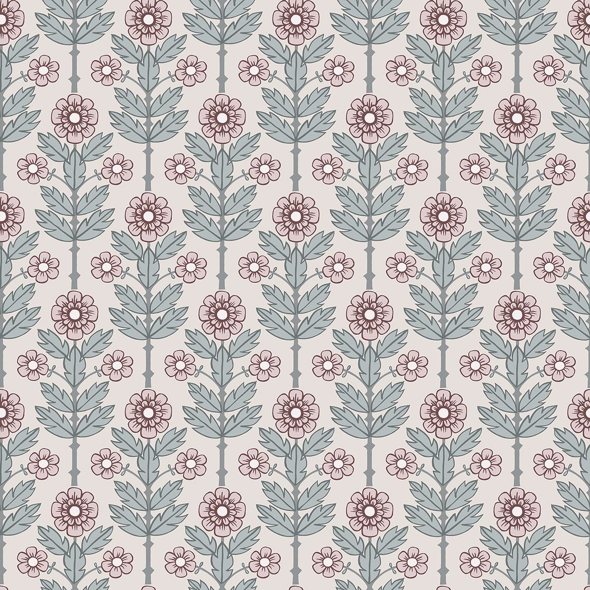 Complete with light pink flowers and grey leaves, this eggshell nature inspired print has a classic charm. Its dazzling painterly design will add a folksy flair to rooms. Aya is an unpasted, non woven wallpaper.