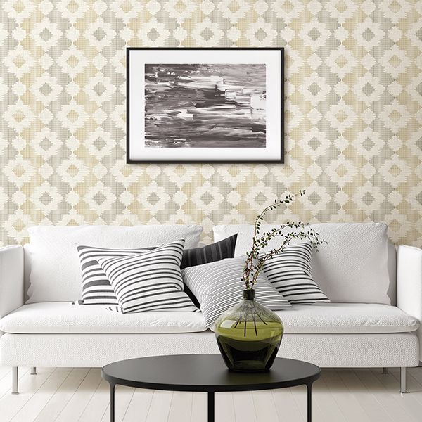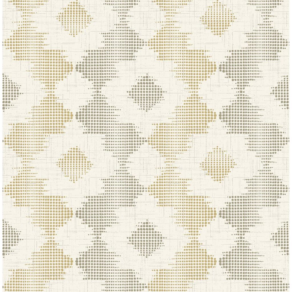 Framed by hundreds of mustard and taupe dots, this abstract floral has a sunny energy. The dynamic look of the wallpaper is enhanced with slight distressing. Babylon is an unpasted, non woven wallpaper.