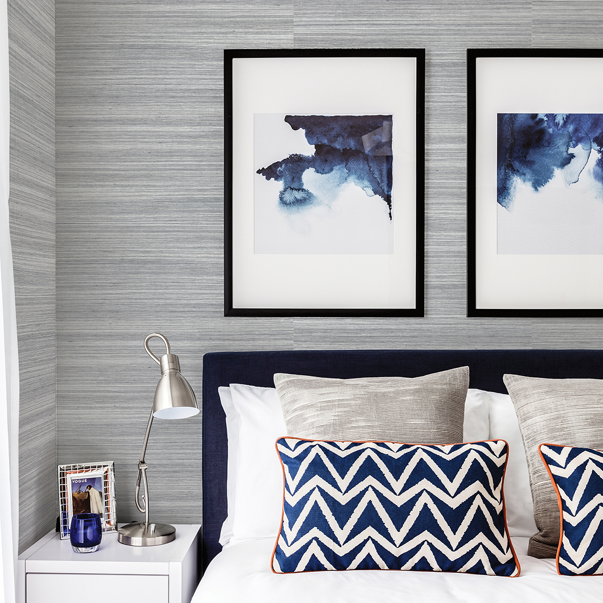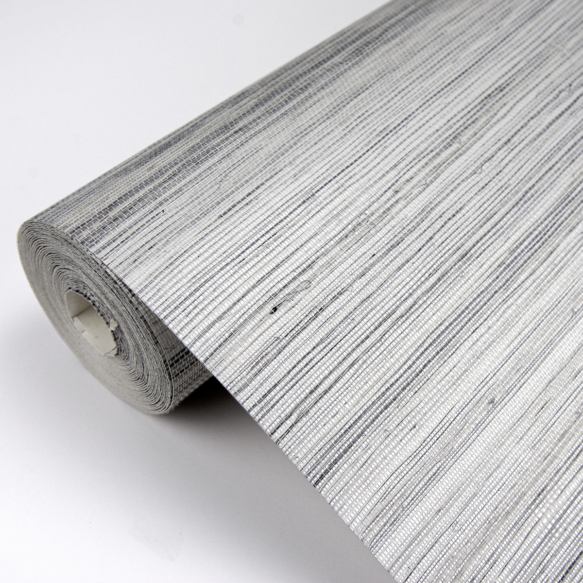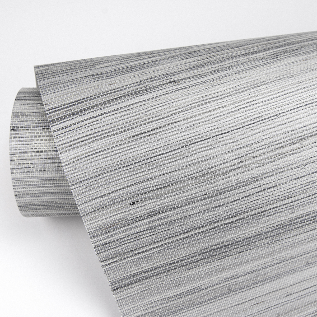 With a brilliant silver hue, this finely woven grasscloth wallpaper is truly stunning. Its metallic design is accented by grey, off-white, and charcoal fibers. Baishin is an unpasted, grasscloth wallpaper.