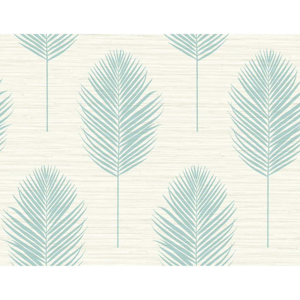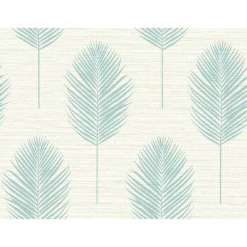 This breezy and chic tropical wallpaper will revitalize your walls. The large palm leaves are inked in bright aqua against an ivory faux grasscloth backdrop. Bali is an unpasted, vinyl wallpaper.