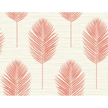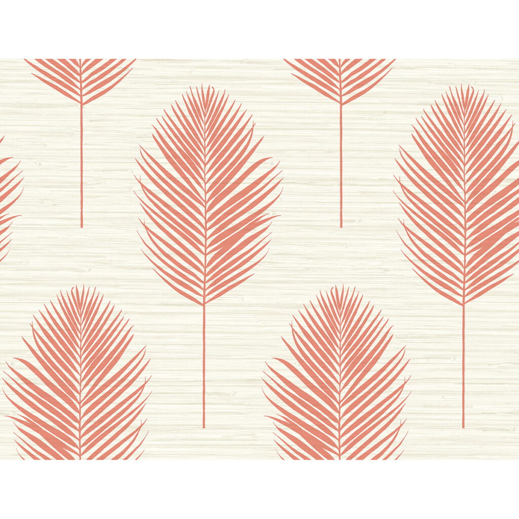 Bring tropical warmth to your home with this gorgeous botanical wallpaper! Large palm leaves are inked in bright coral along a ivory faux grasscloth backdrop. Bali is an unpasted, vinyl wallpaper.
