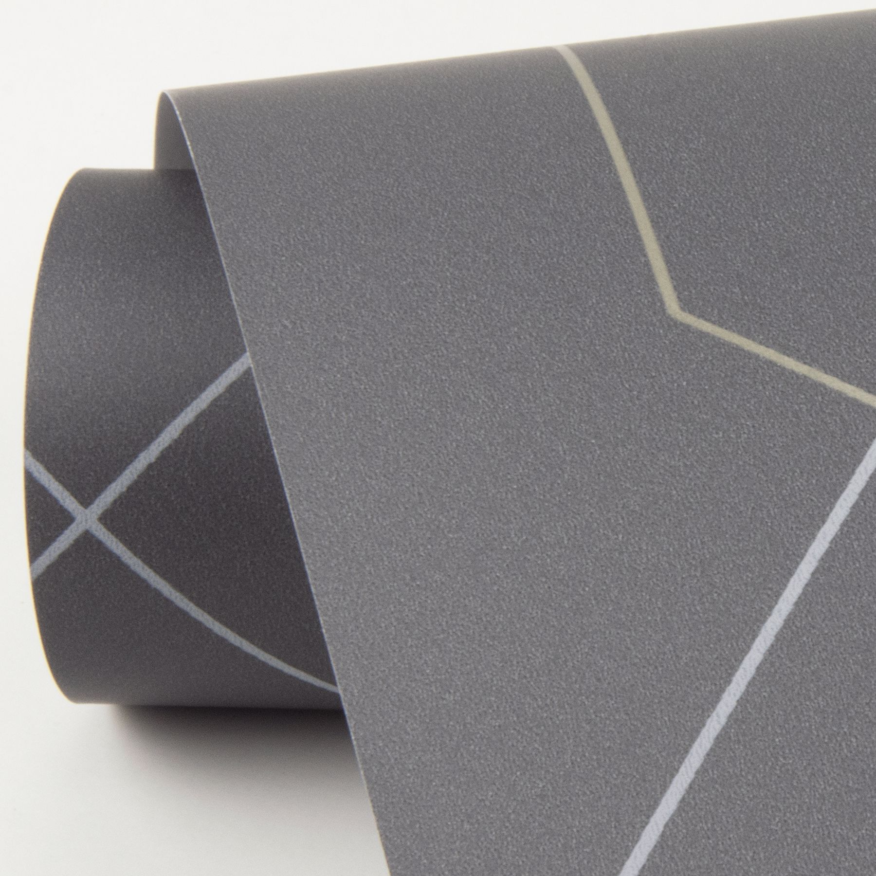 Gold- and pale blue-colored lines form a stunning geometric design on a matte grey backdrop, creating the perfect wallpaper for modernizing any space. Ballard is an unpasted, non-woven wallpaper.