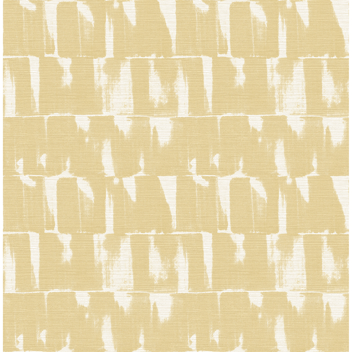 Add delightful, golden abstraction to your interiors with this modern stripe wallpaper. The shibori-like bands feature a blend of pale gold and white elevated with rough, textural detailing. Bancroft is an unpasted, non woven wallpaper measuring 20.5 inches wide by 33 feet long, covering approximately 56.4 square feet per roll.