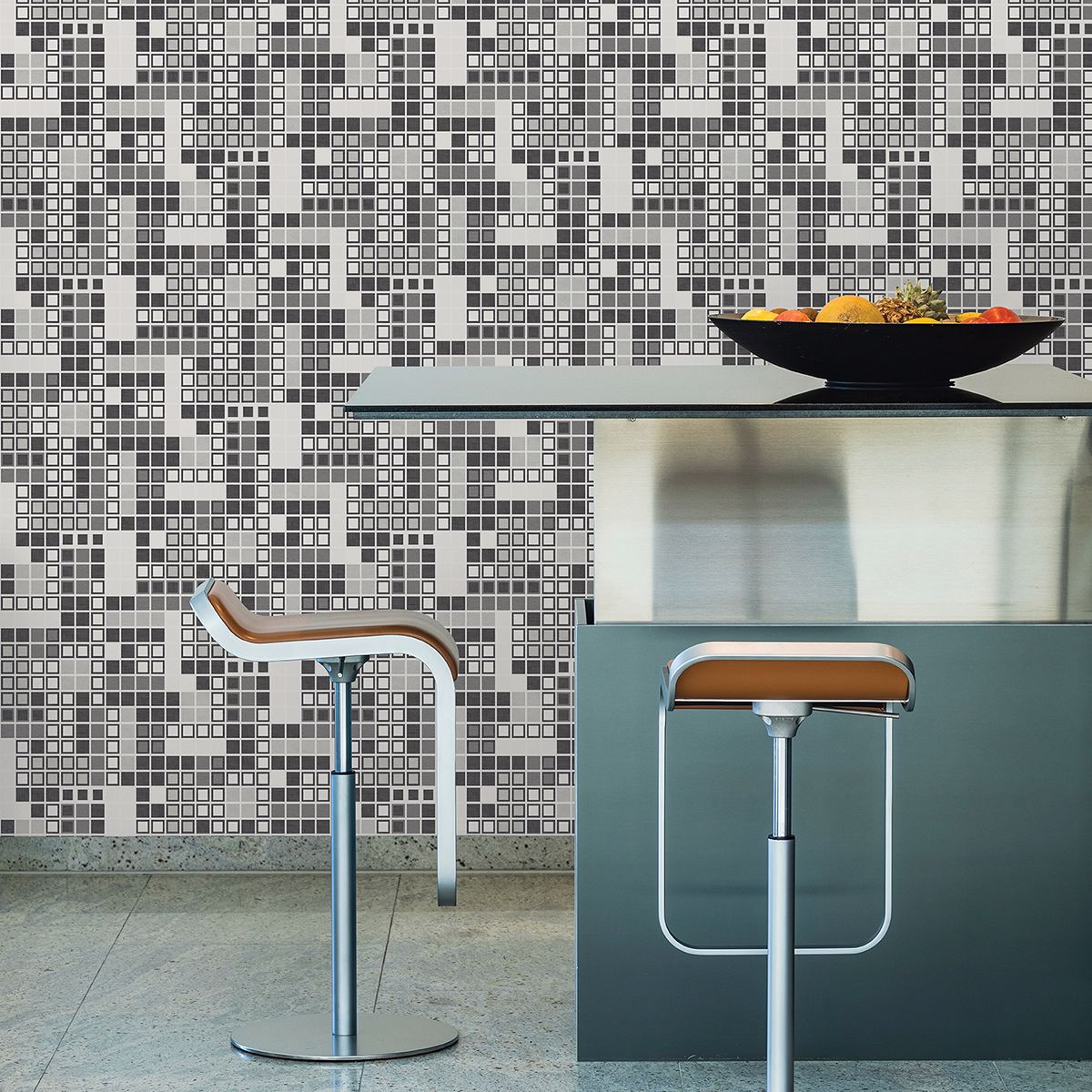 Retro meets contemporary with this geometric wallpaper. Black and grey hues dazzle against a crisp white background. Bantry is an unpasted, acrylic coated paper wallpaper.