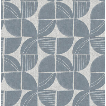 This geometric wallpaper offers an elevated take on rustic ambiance, with embellished blue semicircles tiled against a light grey cement textured backdrop. Baxter is an unpasted, non woven wallpaper measuring 20.5 inches wide by 33 feet long, covering approximately 56.4 square feet per roll.