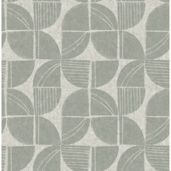 This geometric wallpaper offers an elevated take on rustic ambiance, with embellished pale teal semicircles tiled against a light grey cement textured backdrop. Baxter is an unpasted, non woven wallpaper measuring 20.5 inches wide by 33 feet long, covering approximately 56.4 square feet per roll.