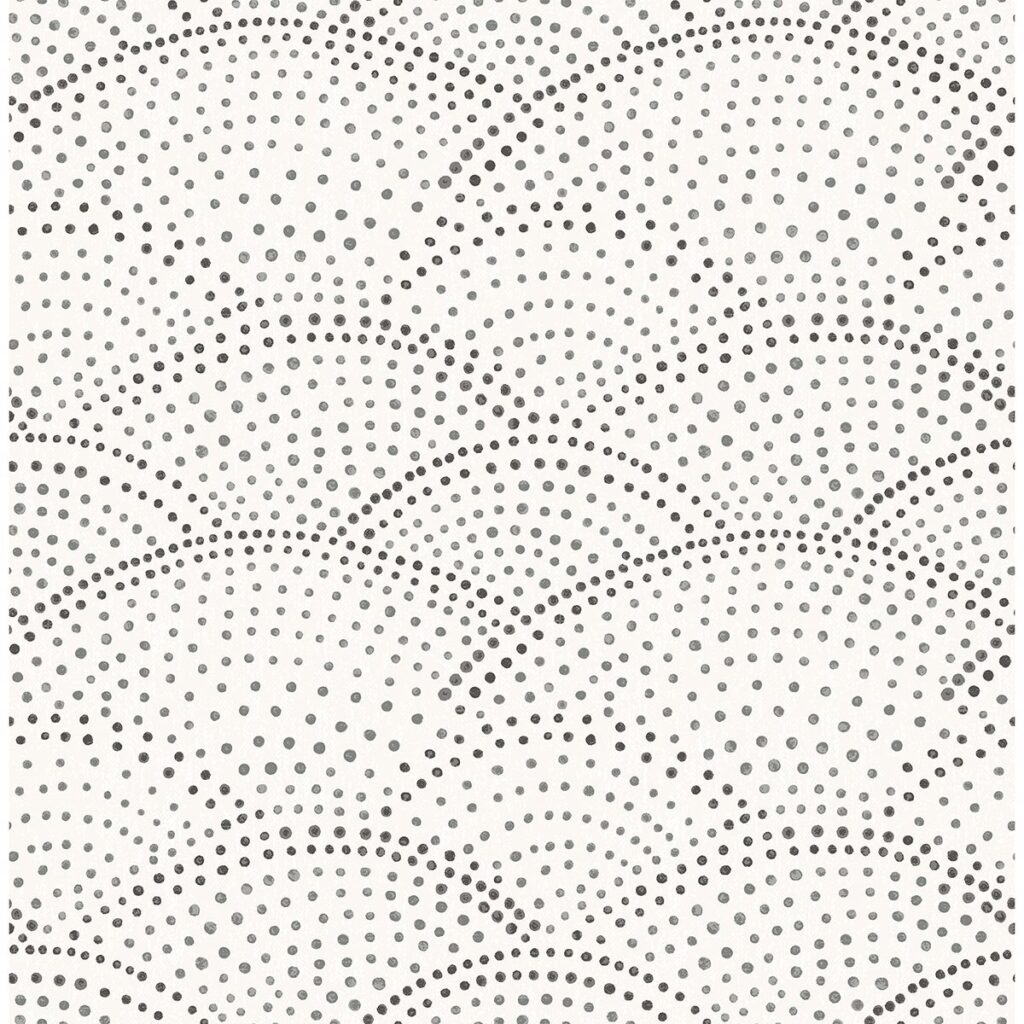 Dark brown and black dots meld to create this eclectic scallop wallpaper. Raised inks lend to its dimensional look. Bennett is an unpasted, non woven wallpaper.