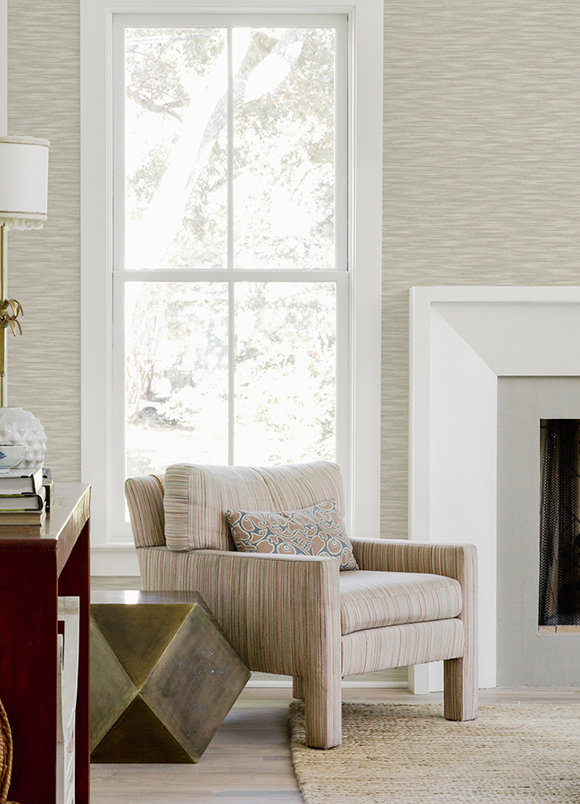 The subtle variation of this faux fabric wallpaper brings chic dimension to your interiors. The cream, light grey, and darker grey hues blend together to create an organically striped surface. Benson is an unpasted, non woven wallpaper.