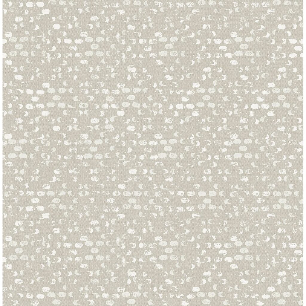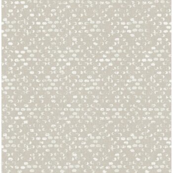 Pale seafoam and white brush marks are dotted across on a bone color background. A hidden harlequin pattern is revealed when viewed from afar. Blissful is an unpasted, non woven wallpaper.