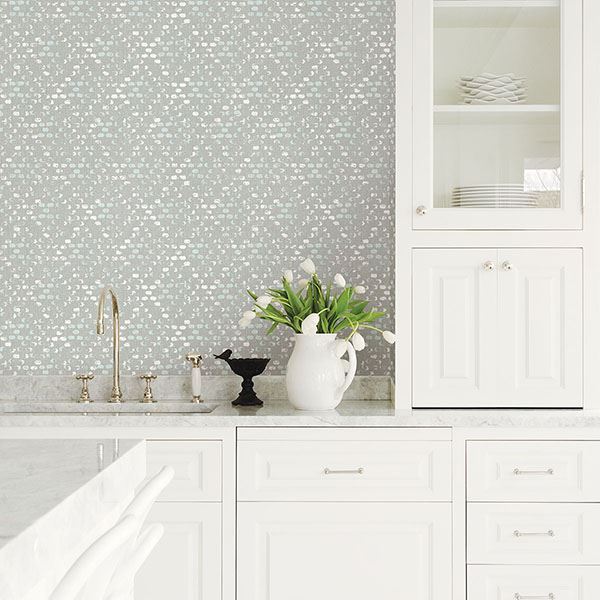 Drawing on the carefree feeling of clouds drifting across a soft blue sky, this modern trellis wallpaper will bring tranquil happiness to a room. The raised ink pattern has a distressed texture to give it a look reminiscent of block printing. Blissful is an unpasted, non woven wallpaper.