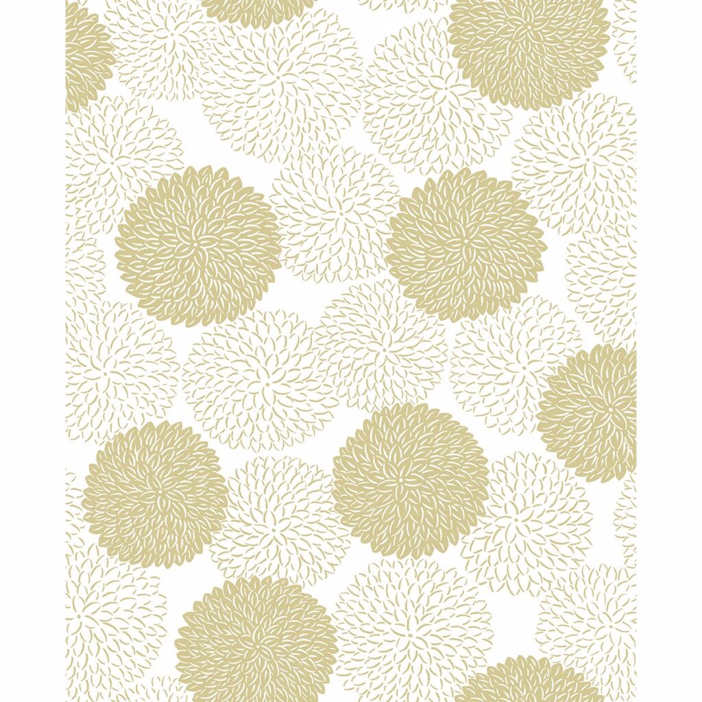 Metallic gold ink brings new life to a classic floral motif, echoing the longevity and rejuvenation symbolized by chrysanthemums in Japanese culture. A beautiful modern wallpaper. Blithe is a unpasted, non woven wallpaper.
