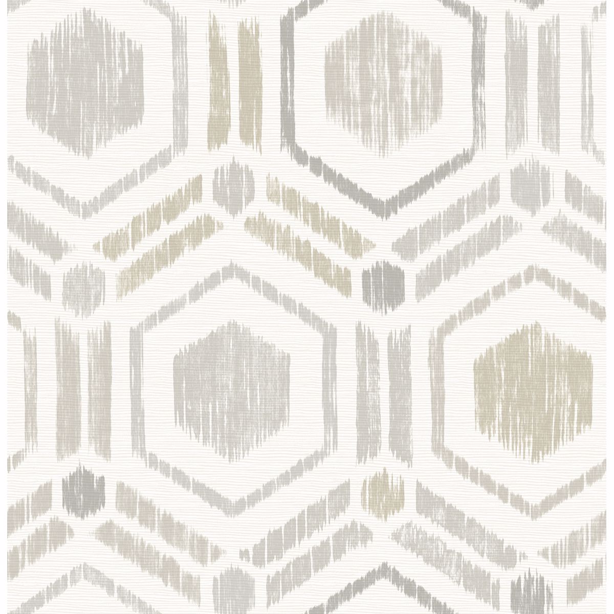 With a woven and textured design, this faux grasscloth wallpaper has a realistic look. Its boho chic geometric print features light grey and beige hues. Borneo is an unpasted, non woven wallpaper.