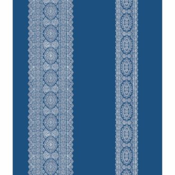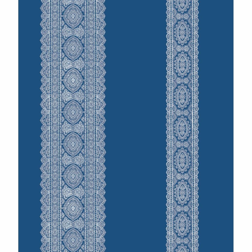 Tailor walls to fit your lifestyle with this gorgeous indigo and white wallpaper. Wide bands are alternated with an embellished stripe for a global look that’s nothing but fascinating.