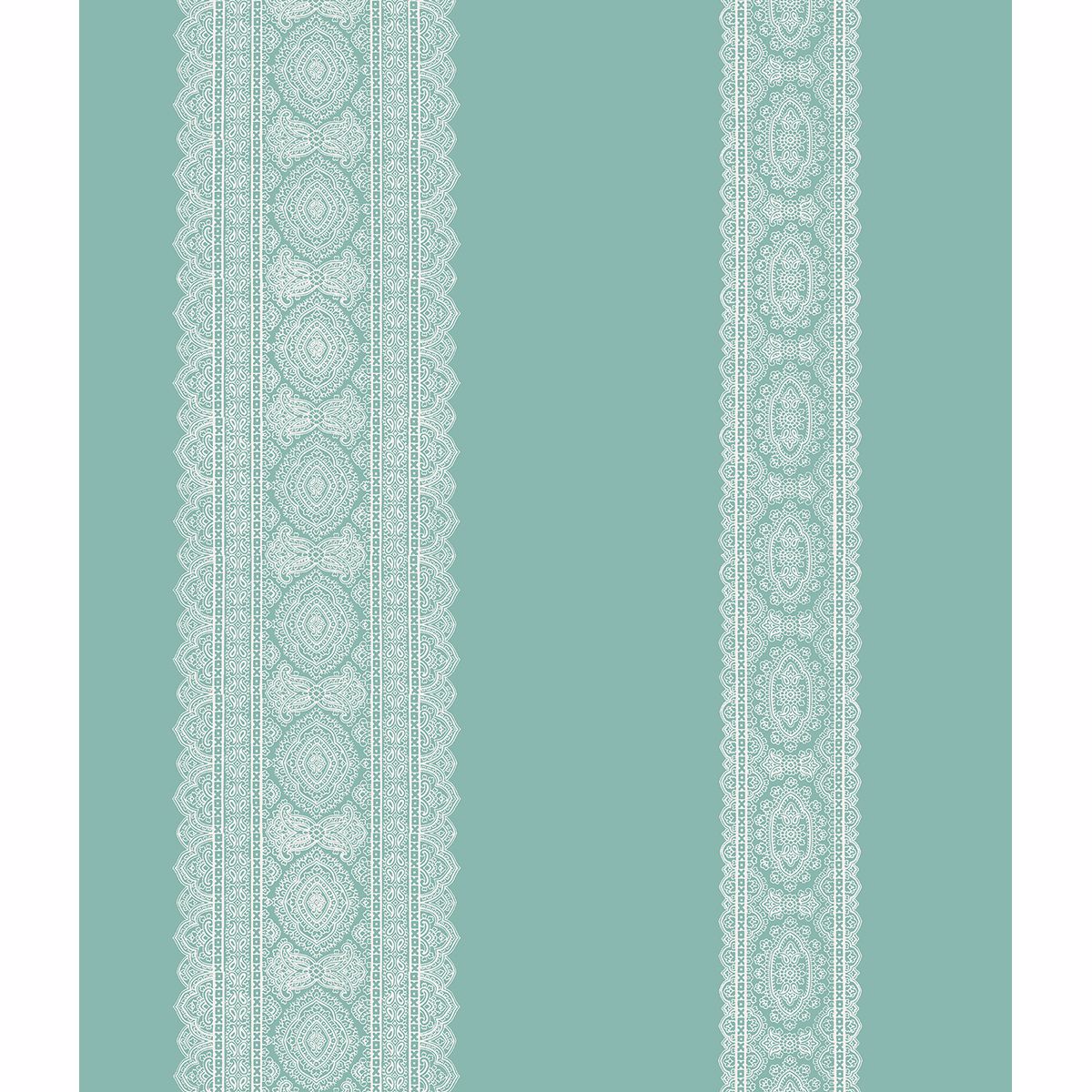 Designed in a cool turquoise hue, this global stripe features an exquisite paisley design filled with mehndi style details. A refreshing wall statement, this chic wallcovering has the feeling of a silk tapestry or vintage cloth.