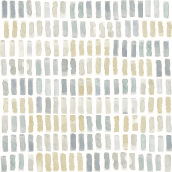 A contemporary geometric offers a simplified take on mosaic design. A grey and yellow watercolor finish provides artistic flair. Brynne is an unpasted, non woven wallpaper.