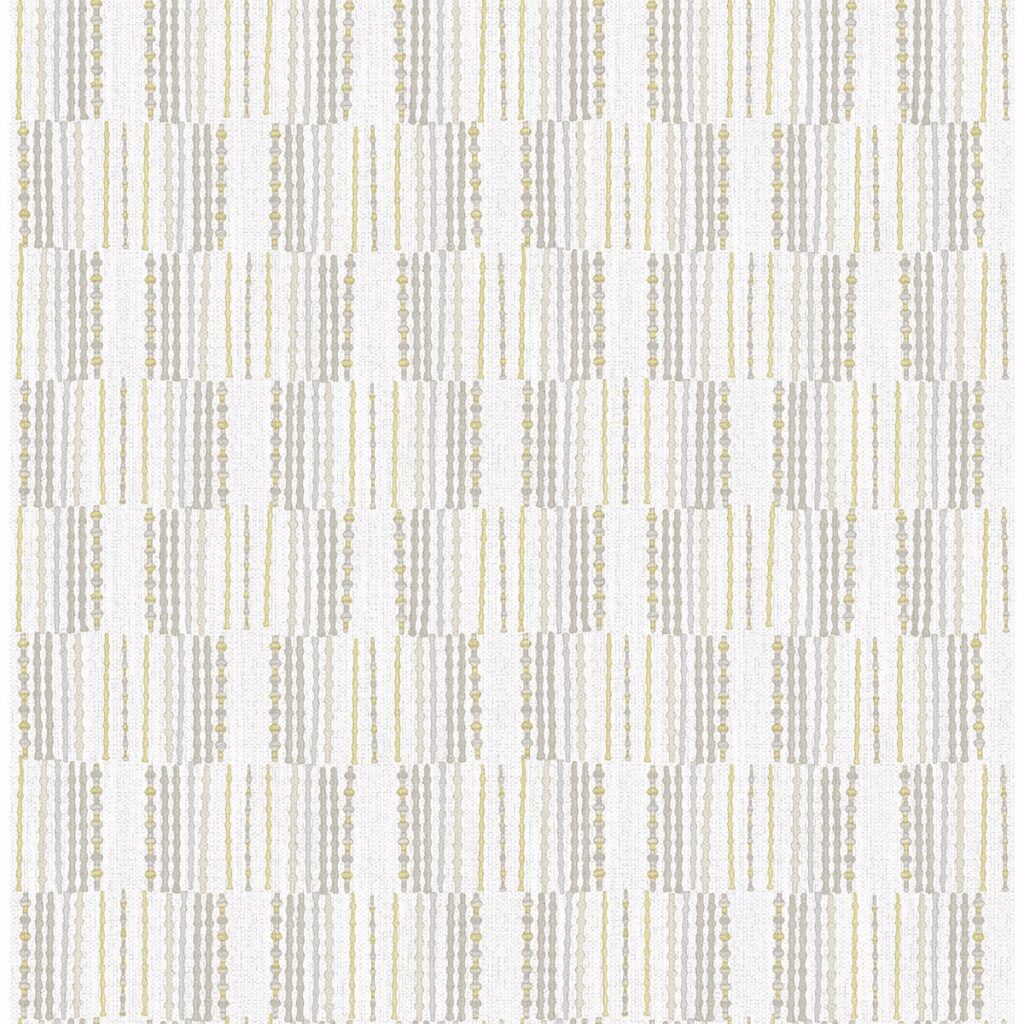 Add dimension to walls with this fabric inspired wallpaper. Taupe, mustard and light grey geometrics add an eclectic touch to its transitional style, while raised inks create a textural effect. Burgen is an unpasted, non woven wallpaper.