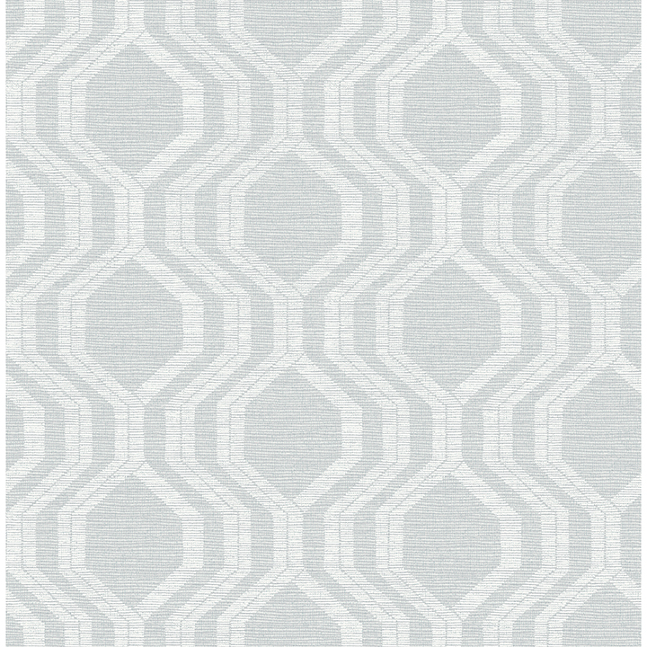 This modern update to classic ogee styling features hexagonal detailing, faux grasscloth texture, and two tones of steely grey finished with a metallic silver sheen. Burton is an unpasted, non woven wallpaper measuring 20.5 inches wide by 33 feet long, covering approximately 56.4 square feet per roll.