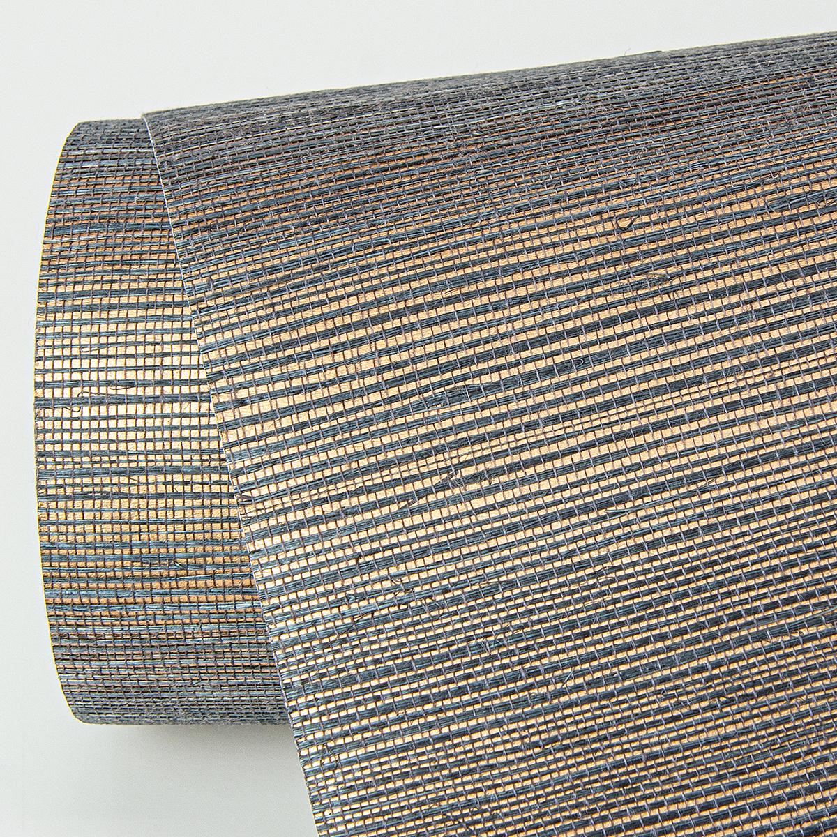 Stormy blue and metallic bronze are a dramatic pairing in this sisal wallpaper! Thin blue-grey grasses are stitched along the metallic backdrop, it’s coppery hue coming to life when it catches the light. Caihon is an unpasted, sisal grasscloth wallpaper.