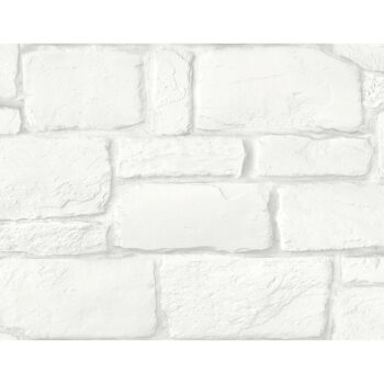 Easily add the rustic and refined appeal of stone to your home with this wallpaper. This white-washed stone accent features bricks of varying sizes, with raised ink detailing mimicking the look and feel of authentic stone. Casablanca is an unpasted, vinyl wallpaper.