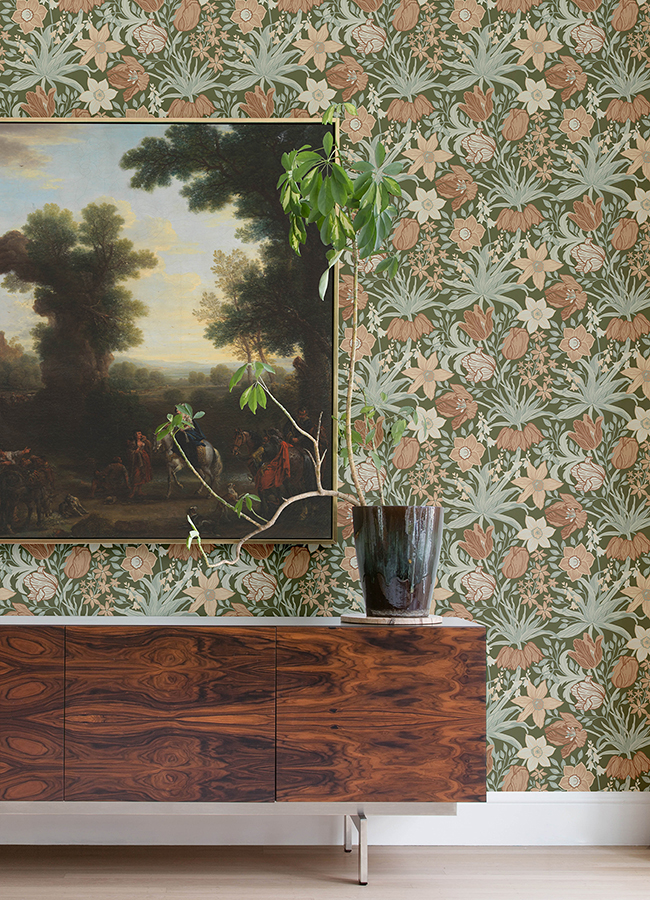 Cecilia Moss Tulip and Daffodil Wallpaper