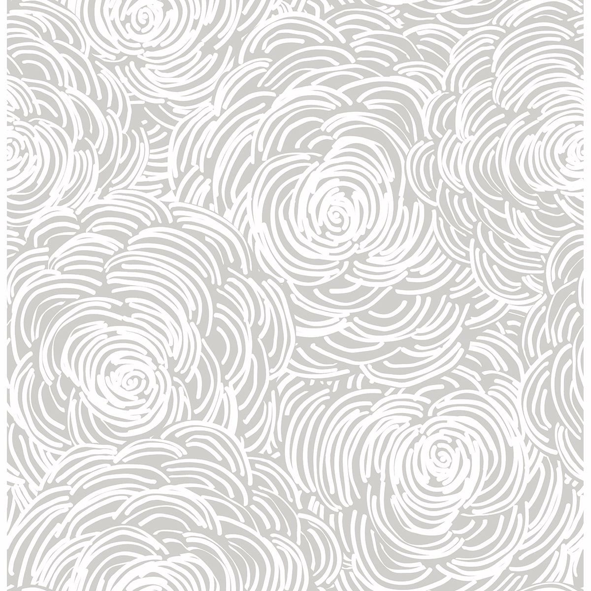 A grey background gives this floral wallpaper a neutral, modern flair. The white lines create a negative space design that has plenty of movement along the wall. Large flowers measure 11 inches.