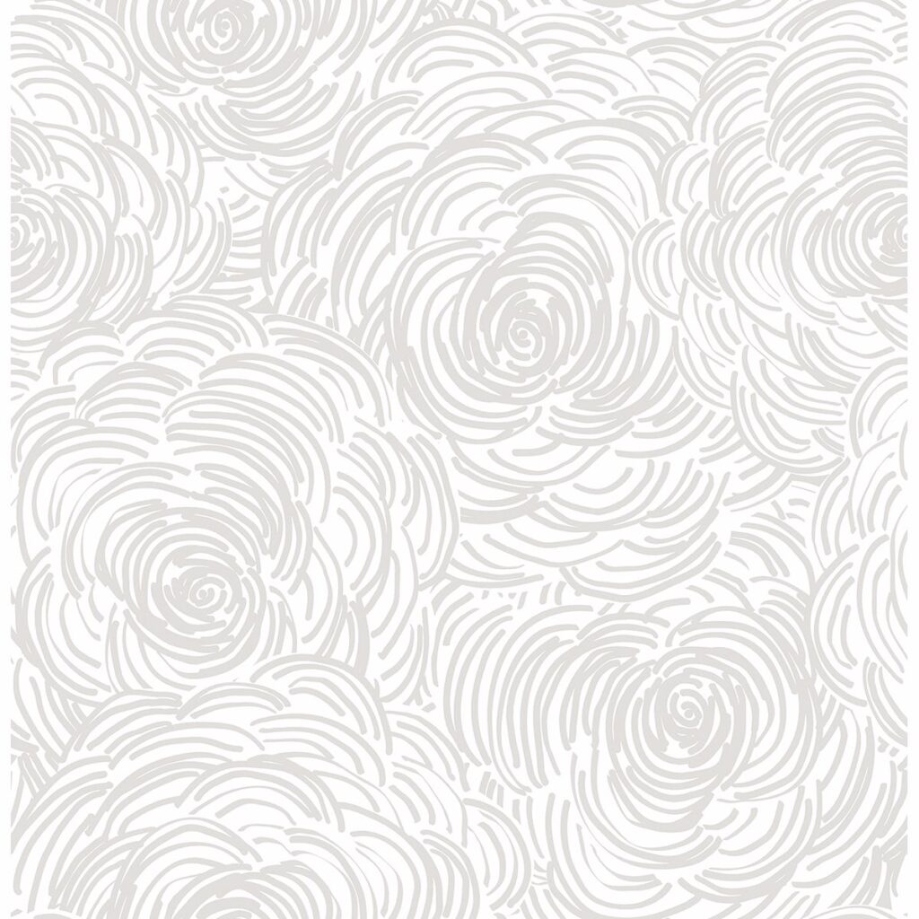 Pump up the volume on your walls with this floral wallpaper. The abstract design uses waves of grey lines to create the peony inspired flowers. A white and taupe color palette is the perfect neutral base to build your style around.