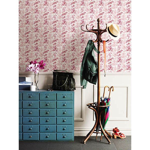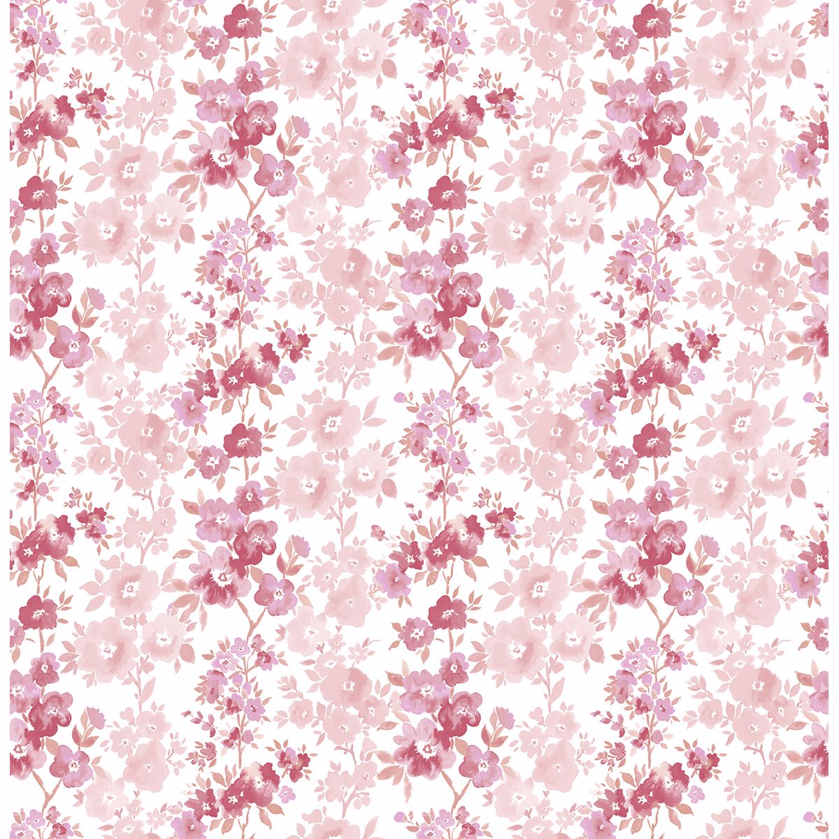Blush, peach, lavender, and magenta combine to form this beautiful floral stripe wallpaper with all the vibrancy of a sunny afternoon. Watercolor patterns add an artistic flair to this stunning design.
