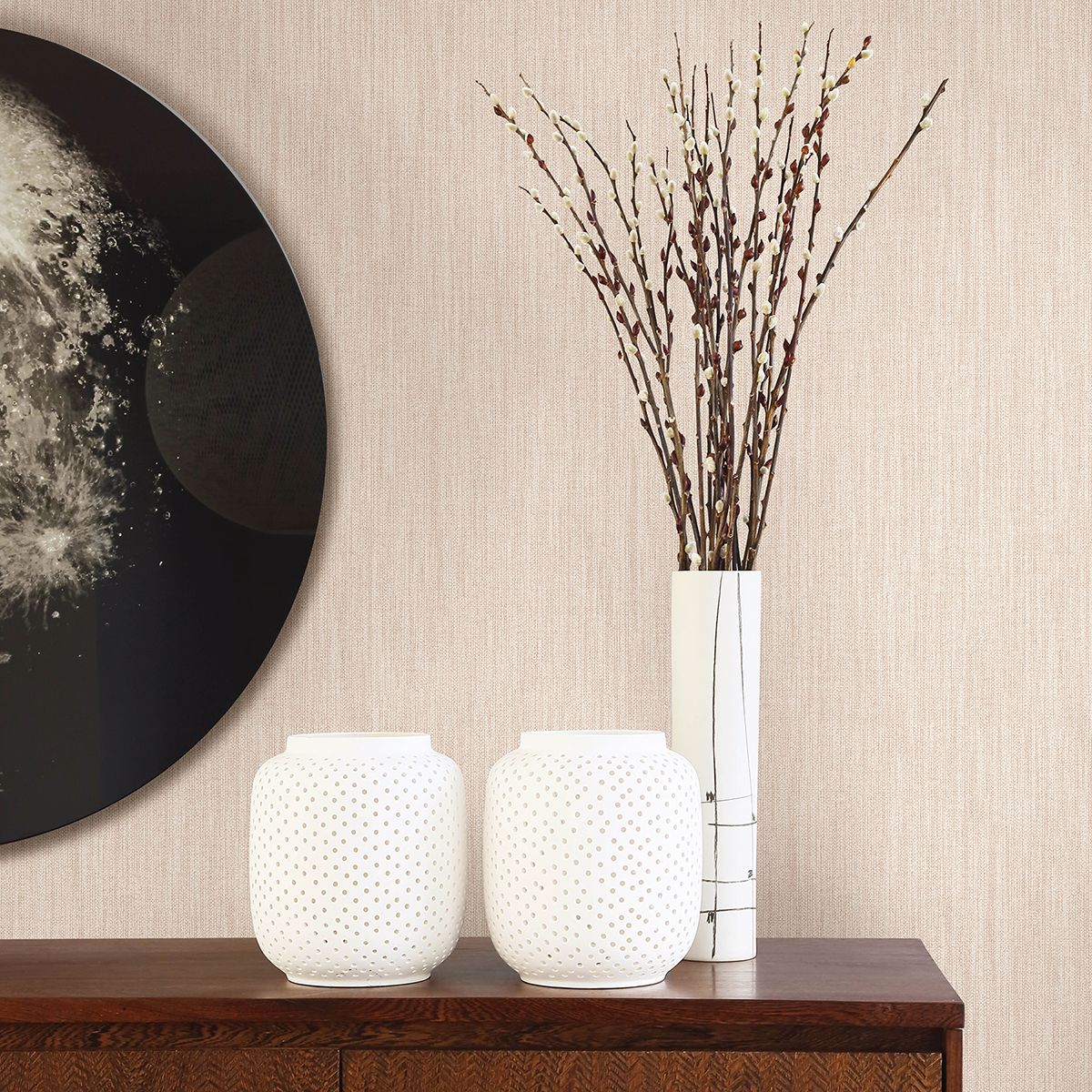 Chenille Blush Faux Linen Wallpaper