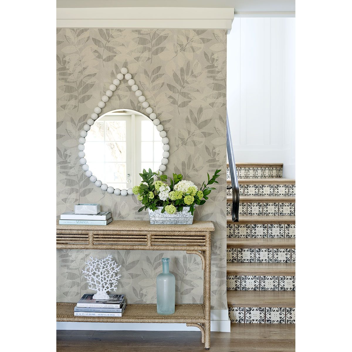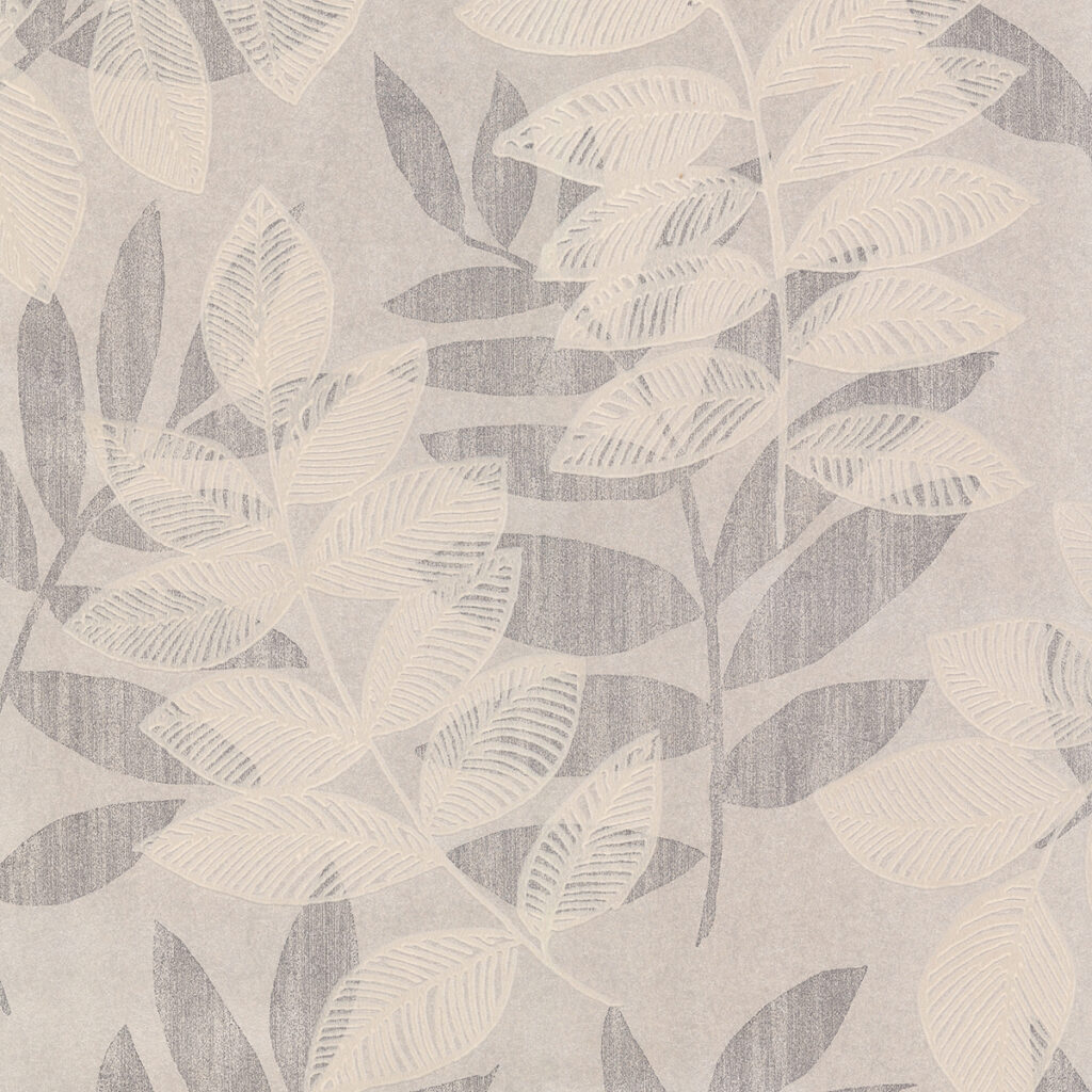 Exquisite printing techniques keep this monochromatic design from falling flat. With metallic platinum shine and off-white flocking, this leaf print wallpaper’s organic beauty has a fantastical feel. Chimera is an unpasted, non woven wallpaper.