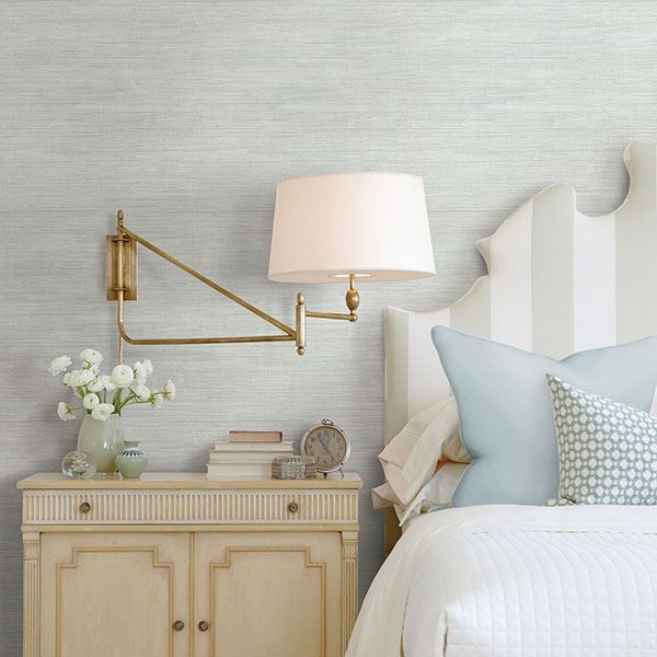 A raised ink texture and beautifully layered hues channel all the refined elegance of real grasscloth, without the fragility of organic fibers. The pale blue will bring a soft and calming wash of color to walls. Faux Grass is an unpasted, nonwoven wallpaper.