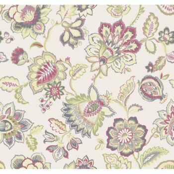 With light yellow, green, magenta and grey hues, this Jacobean wallpaper has a fun and fresh style. Its lovely hand painted style is accented by distressed details. Corona is an unpasted, non woven wallpaper.