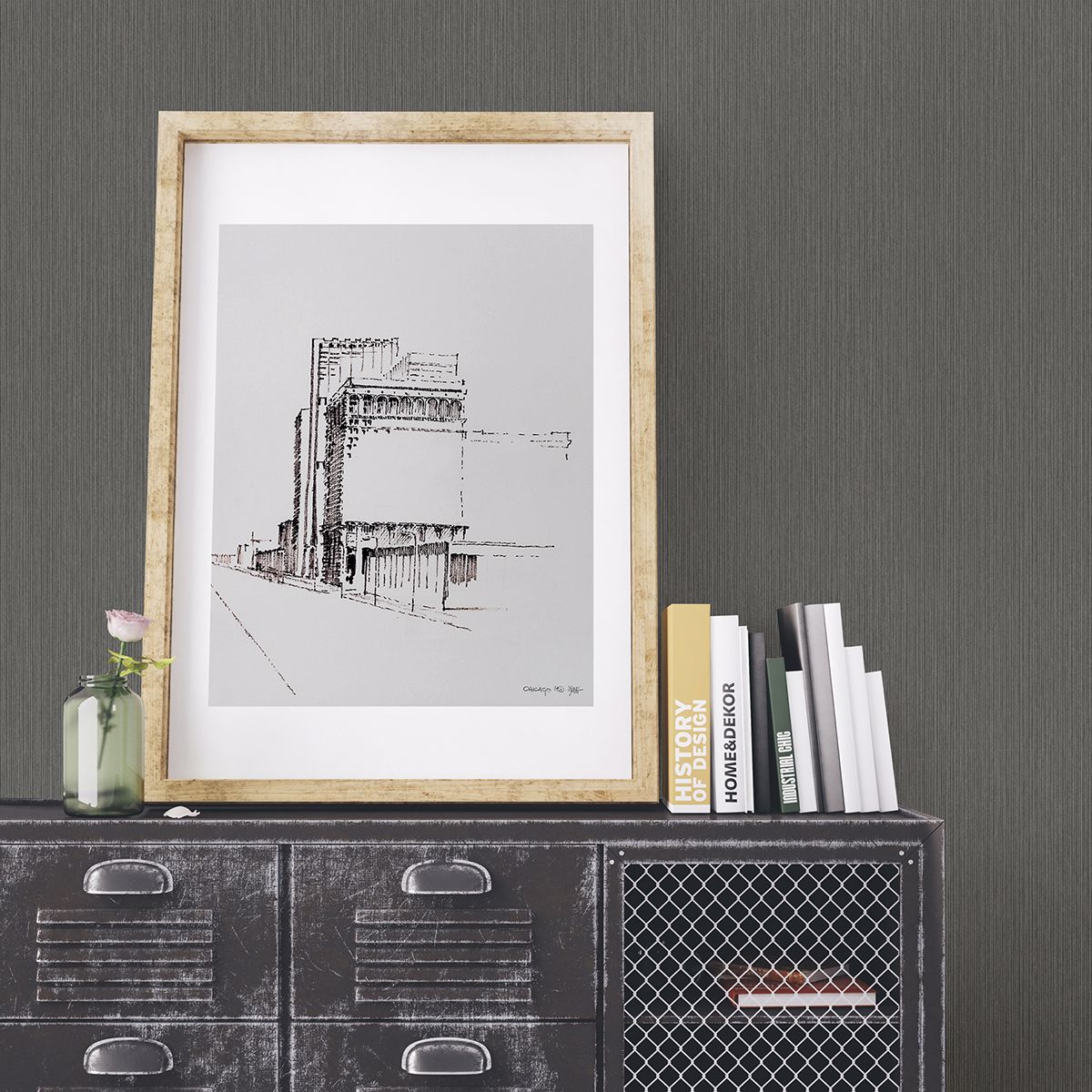 This distressed plywood texture print has a luxurious appeal with its rich charcoal hue. With grey and silver accents its traditional stripe pattern stands out. Ewell is an unpasted, non woven wallpaper. Crewe is an unpasted, non woven wallpaper.
