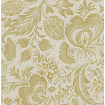 This timeless botanical wallpaper enjoys the look of luxurious fabric. The leafy scrolls and floral blooms are inked in shades of golden yellow along a beige faux linen backdrop. Culver is an unpasted, non woven wallpaper measuring 20.5 inches wide by 33 feet long, covering approxiamately About 56.4 square feet square feet per roll